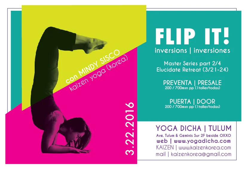 Presale: 1 workshop 350mxn pp/ full series 700mxn pp (may be paid to Yoga Dicha)